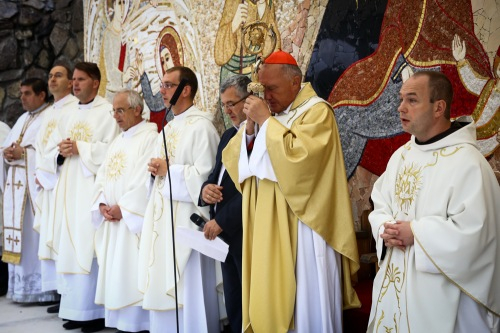 A főbúcsú napján Kazimierz Nycz bíboros átadta Boldog Jerzy Popiełuszko ereklyéit, és bemutatta a vértanú életét. A lengyel bíboros a lengyel nép küldötteként az egész lengyel egyház nevében magyarul köszöntötte a búcsús zarándokokat. Ezeréves történelmünk folyamán közös szentjeink szorosan összekapcsolják a lengyel és magyar nemzetet. A szentek sorából kiemelte a 20. század vértanúit, az irgalmasság apostolaként tisztelt Fausztina nővért és a század második felének mártírját, Boldog Jerzy Popiełuszko atyát. Örömét fejezte ki, hogy Magyarország nemzeti kegyhelyén is otthonra talál ereklyéje. Fontos, hogy megismerjük azok életét, akiket egyházunk az oltárra emel. Életpéldájuk utat mutat mind az Isten-szeretet, mind az emberszeretet útján. Emberként szükségünk van a jelekre, ilyenek számunkra az ereklyék – mondta a bíboros. Bennük az egyház hagyománya szerint a szentháromságos egy Istent magasztaljuk. Szentjeink hitvalló életében Isten szeretetét szemlélhetjük. Kövessük Isten és emberek iránti odaadottságukat – buzdított Kazimierz Nycz.