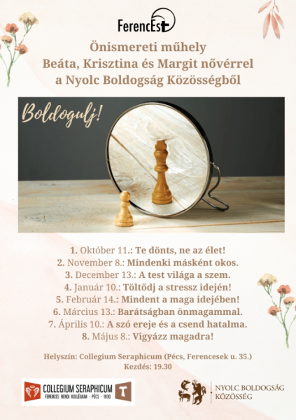 A FerencEstek nyitottak, minden érdeklődő egyetemistát szeretettel várnak rá a kollégium előadótermében. A részletekről további információk a Collegium Seraphicum közösségi oldalain találhatók.
