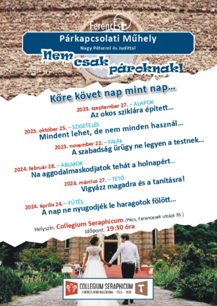 A párkapcsolat témáit Nagy Péter, a Pécsi Egyházmegye közoktatási munkatársa és felesége bontja ki, „Követ kőre nap mint nap” jeligére.