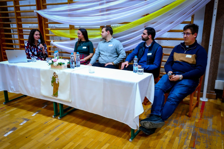 A beszélgetés résztvevői – Szabó Dániel piarista szerzetes pap, Tompa Szabolcs jánoshalmi káplán, valamint Bódog-Mester Dóra és Bódog Balázs fiatal házaspár – megosztották a fiatalokkal hivatásuk, életállapotuk kapcsán a döntéshez és elköteleződéshez vezető út szépségeit és nehézségeit. Ma is érdemes keresni Isten akaratát, a nekünk szánt utat az életünkben.