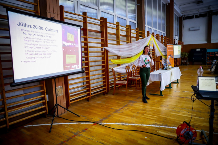 Ezt követően Jáger Tekla kiskunhalasi fiatal rövid képes beszámolót tartott a nyári lisszaboni találkozón szerzett élményeiről.