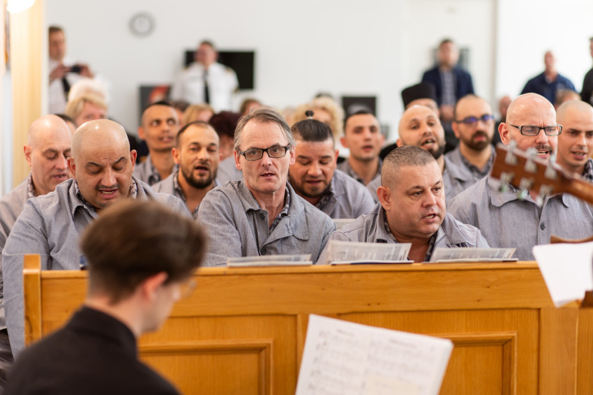 „Tárjátok kezeitek az élő Isten felé…” – énekelték teli torokból a fogvatartottak és az őrök együtt az istentiszteletre készülve, melyre bevonult Székely János szombathelyi megyéspüspök, Barna Sándor, a Tiszáninneni Református Egyházkerület püspöke; Tóth Viktória és Mészáros Ferenc, a Sátoraljaújhelyi Fegyház és Börtön református, illetve római katolikus lelkésze.