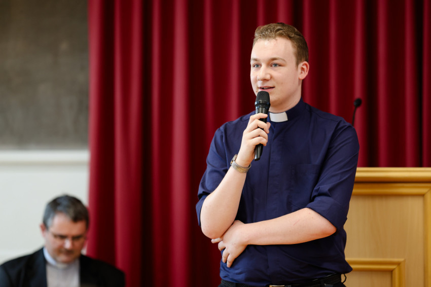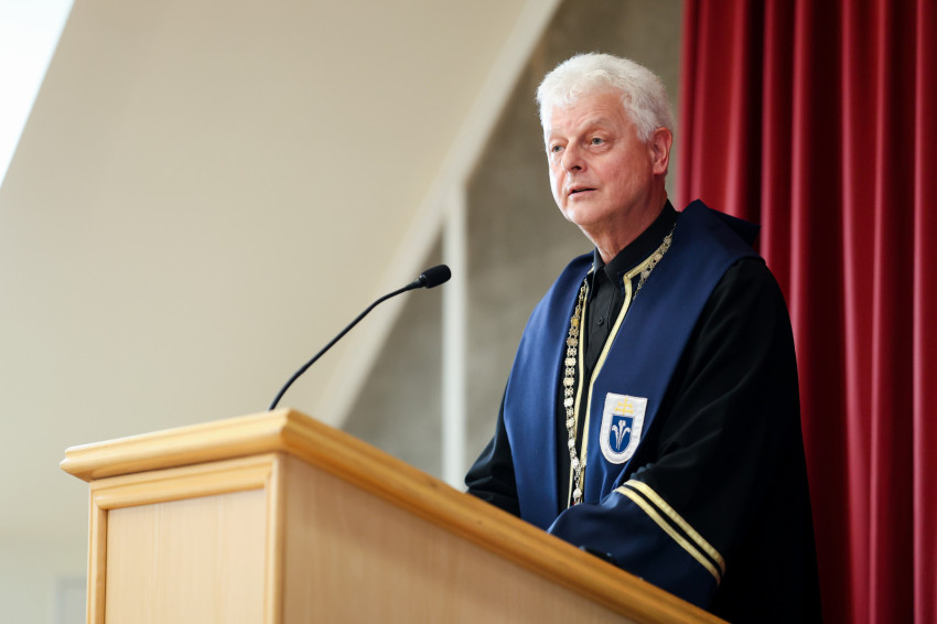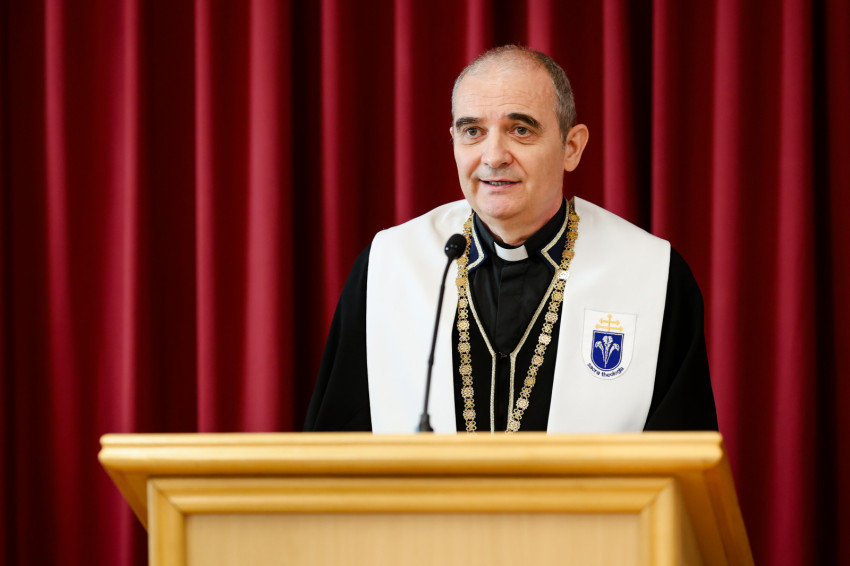 Köszöntötte a megjelenteket Kuminetz Géza, a Pázmány Péter Katolikus Egyetem rektora is. Kiemelte: a szent tudományok művelése kiemelkedő helyet foglal el a tudományok univerzumában, mivel egyedülálló módon fejleszti minden képességünket, sokrétű intelligenciánkat.