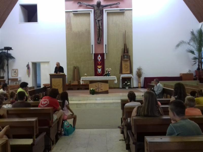 A hétfői nap az ismerkedésről szólt. Délután nyitó szentmisén vett részt mind a 79 táborlakó. A következő nap délutánján a fiatalok a domaszéki Szent Kereszt-templomhoz túráztak, amelyet Sóki Károly plébános mutatott be nekik.