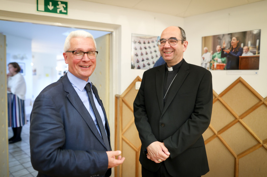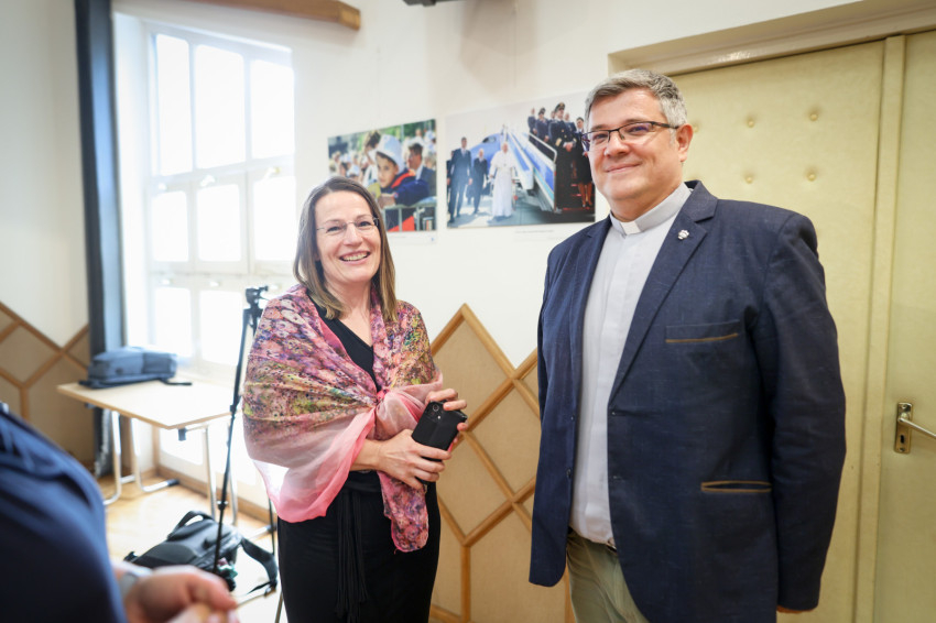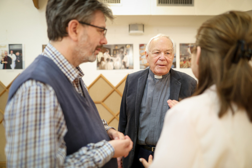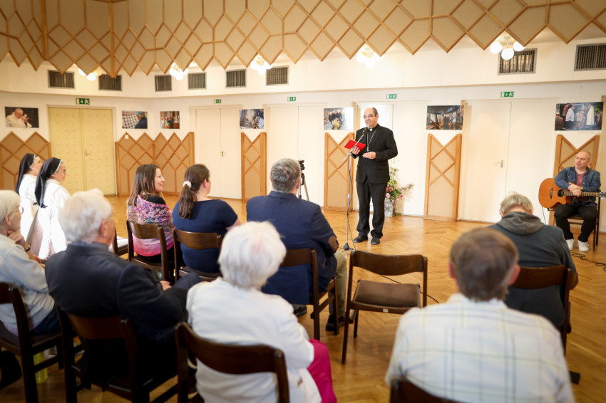 Kuzmányi István megköszönte Merényi Zita és Lambert Attilla több mint tízéves munkáját, melynek gyümölcse többek között az is, ami a falakon látható. „Ugyanazzal a jézusi szeretettel végeztétek, végzitek a munkátokat, sőt szolgálatotokat, amire a Szentatya és Ágoston is utalt. Püspökeink, papjaink, laikus testvéreink nyomán éljük meg mi is ezt a szeretetet.