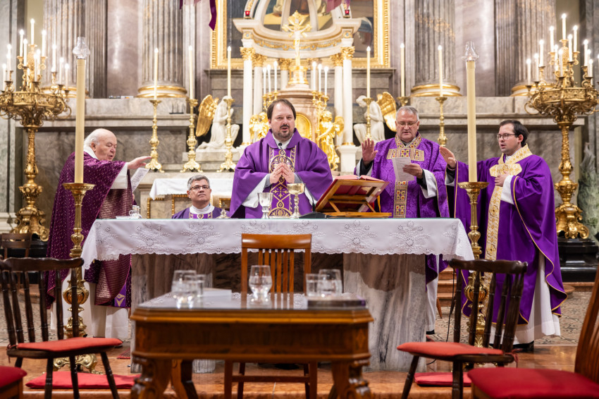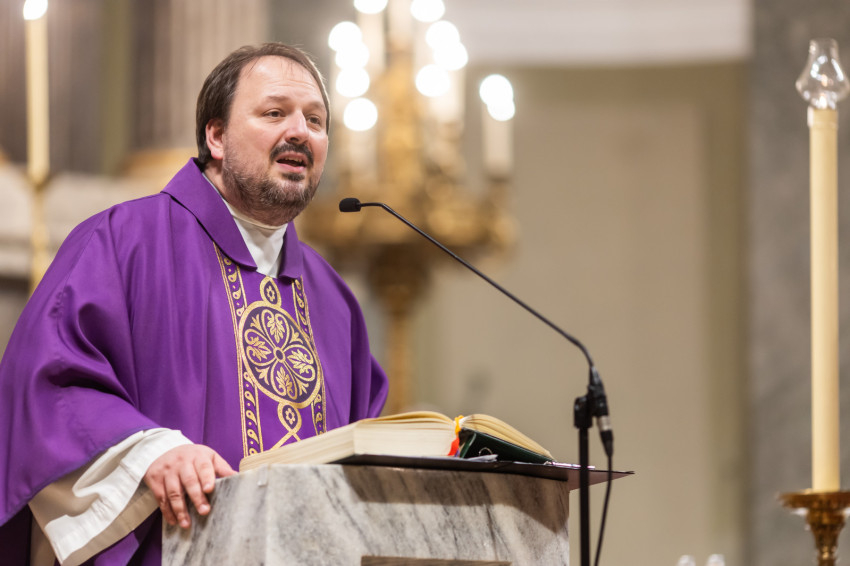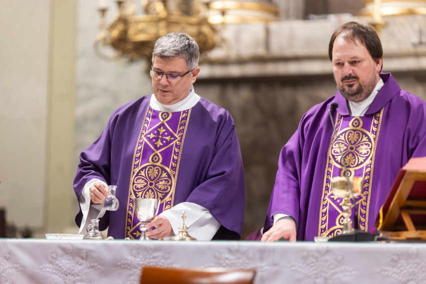 Az evangélium, a Jézus küldetéséről szóló versszakasz Szent Máté könyvéből hangzott el (21, 23–27). Török Csaba homíliájában kifejtette: megszoktuk, hogy az evangéliumban az írástudók és farizeusok cseles kérdéseket tesznek fel Jézusnak. Most viszont fordított a helyzet: Jézus az, aki trükkös kérdéssel csapdába ejti őket. Bármit is válaszolnak, nem lesz jó a felelet, mert így vagy úgy, következménye van, és ezt nem merik vállalni a nép előtt. A szónok „ellépve” az evangélium eredeti üzenetétől, parafrázisba öntötte a kérdést: