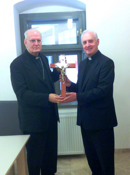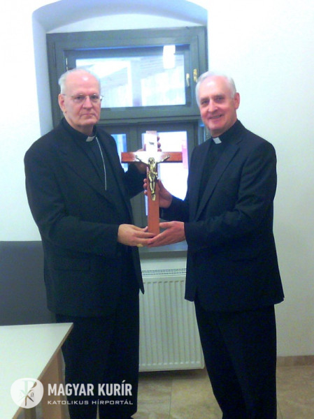 Az első keresztet Erdő Péter bíboros ajándékozta az iskolának Mátraverebély-Szentkúton, ahol meg is áldotta azt.
