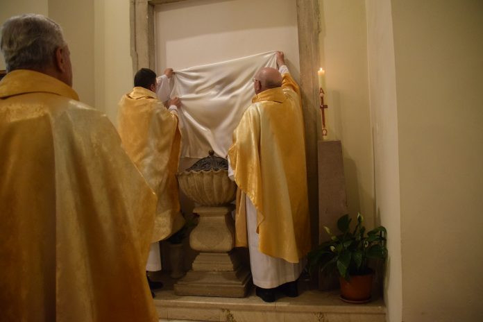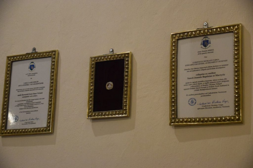 Az ereklyét a templom délkeleti mellékkápolnájának falán helyezték el, a latin nyelvű hitelesítő irat, valamint annak magyar fordítása kíséretében.