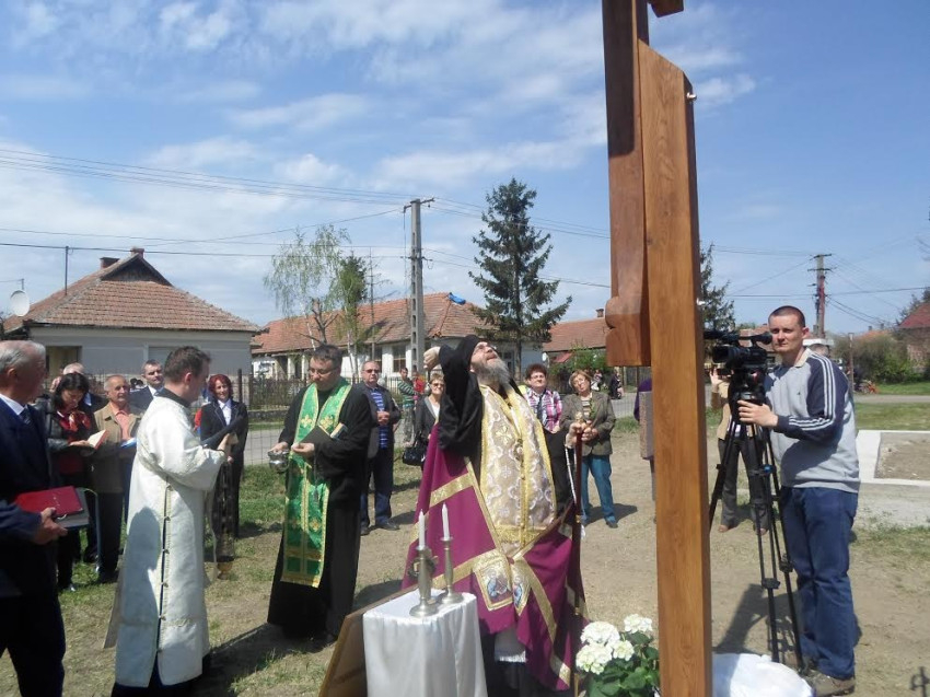A keresztet Mazúr József fafaragó- és Ramács Csaba asztalosmester tölgyfából készítette. Mintázatul az életet jelképező, felfelé irányuló indákat, metszéspontjába az örmény népet szimbolizáló rózsát faragtak a mesterek. Így ez a kereszt az élet fáját is jelképezi. A város polgármestere, Szeles András koszorút helyezett el a meggyilkolt áldozatok emlékére.