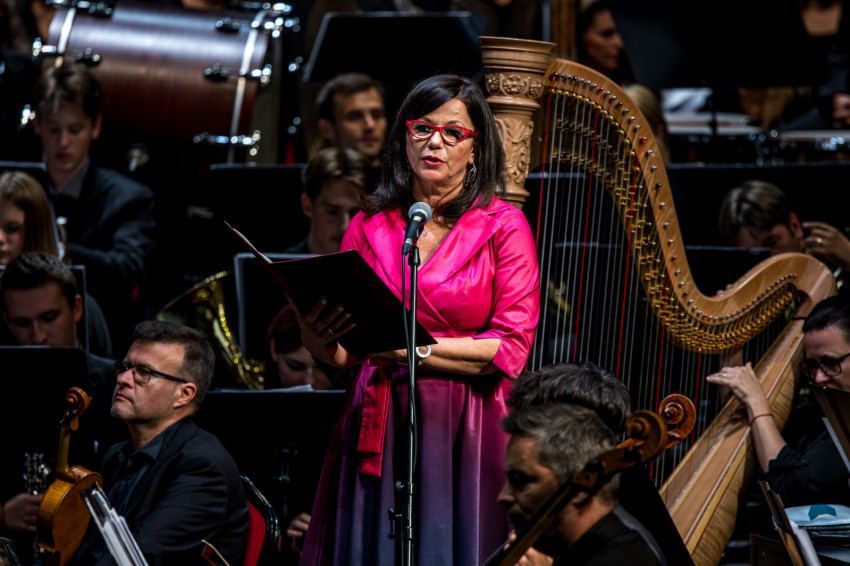 A koncert háziasszonya a Jászai Mari-díjas Ivancsics Ilona volt, aki a zeneművek előtt a filmekhez kapcsolódó gondolatokkal és kérdésekkel segítette a befogadást, melyek után a közönség kivetítőn követhette a zenével illusztrált jeleneteket, összevágott epizódokat.