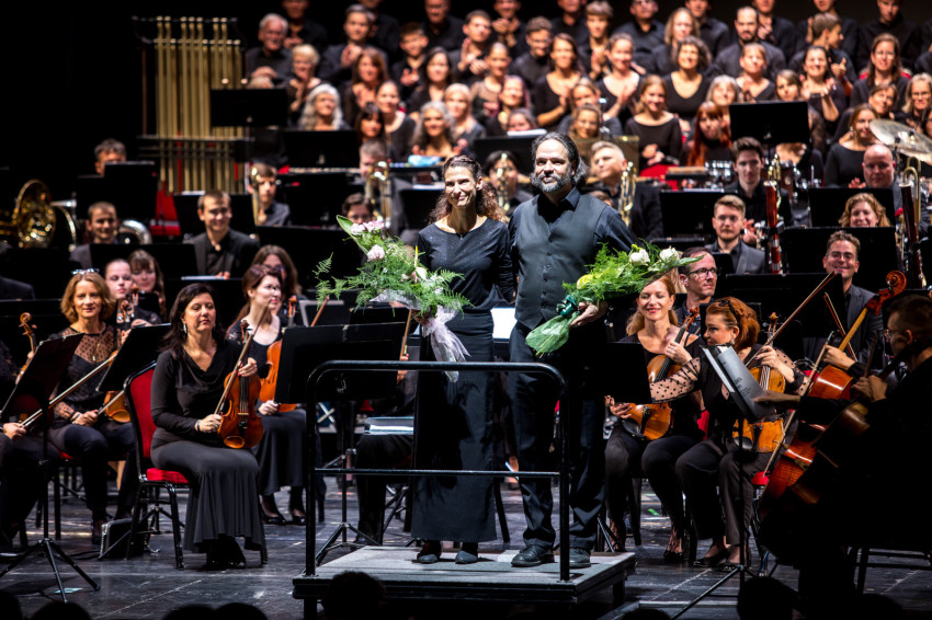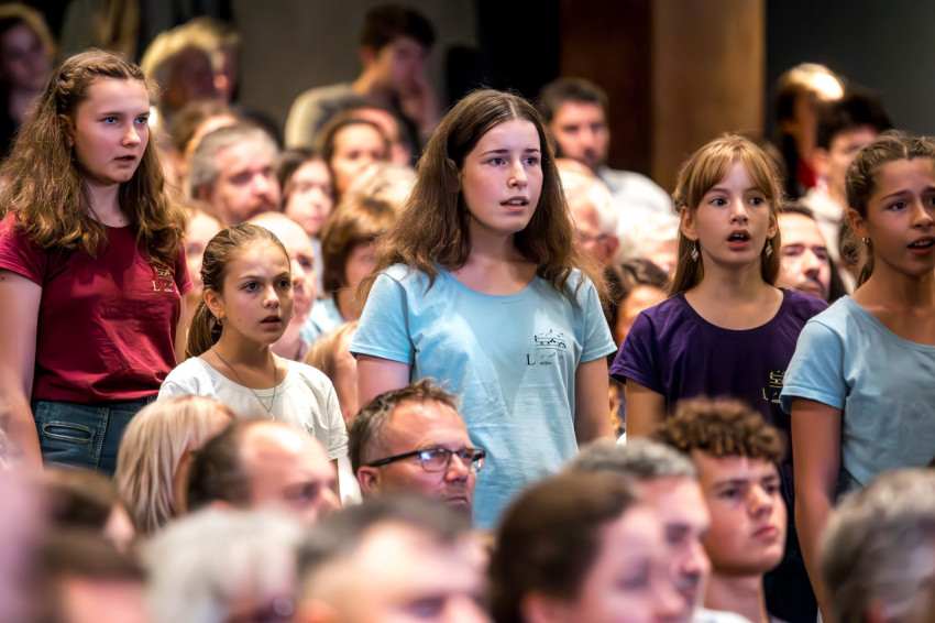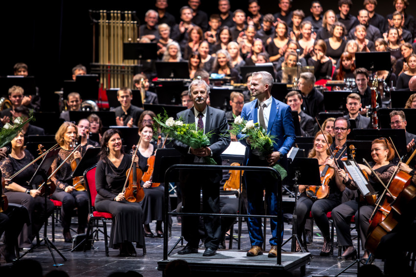 A koncert végén a szólistákat és a felkészítő karnagyokat (Sapszon Borbála, Tóth Márton –Kodály Zoltán Magyar Kórusiskola; Ludmány Emil és Bánfi Balázs – Weiner Leó Katolikus Zeneművészeti Szakgimnázium) virággal köszöntötték.