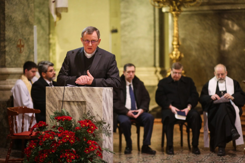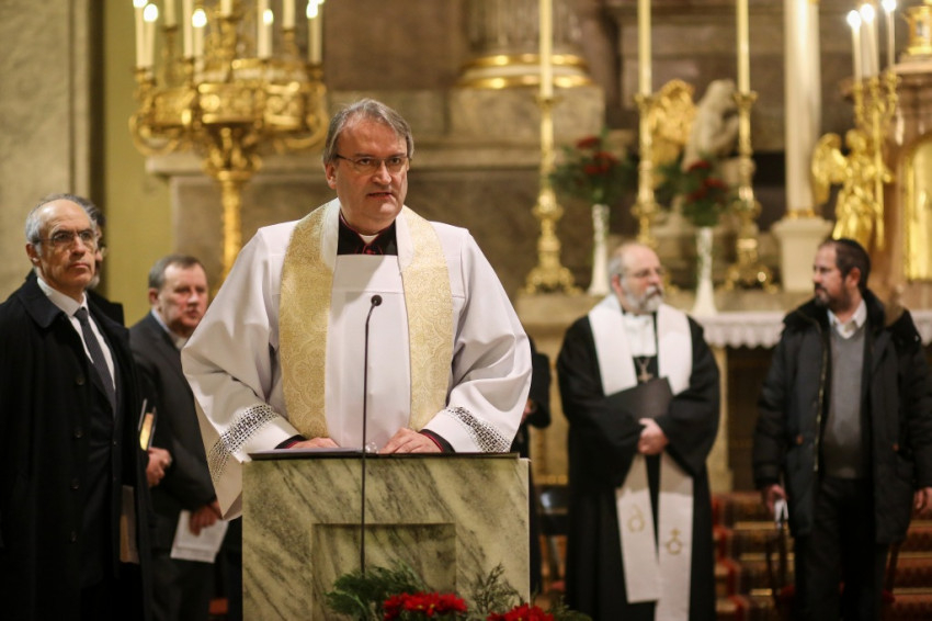 Horváth Zoltán plébános kérésére felállva, csendes imádsággal kezdődött az alkalom a terézvárosi gimnázium diákjait ért veronai buszbaleset áldozatainak emlékére. A terézvárosi templom plébánosa ezt követően köszöntötte az egyházak vezetőit és a híveket.