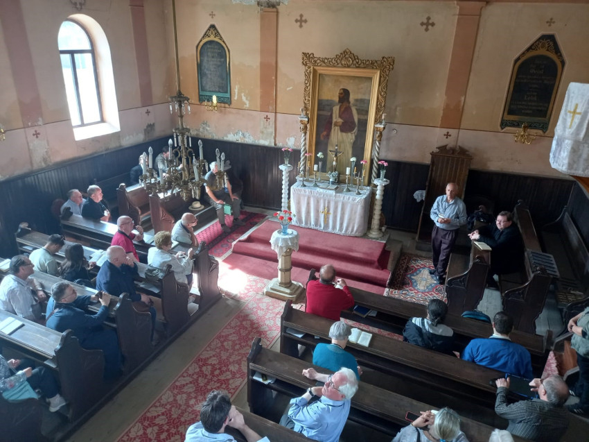Lugoson a vendégek megtekintették a kis ágostai hitvallású evangélikus templomot, amelyet Walther Sinn lelkész mutatott be.