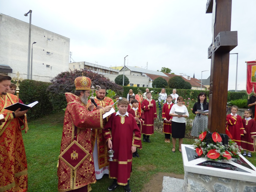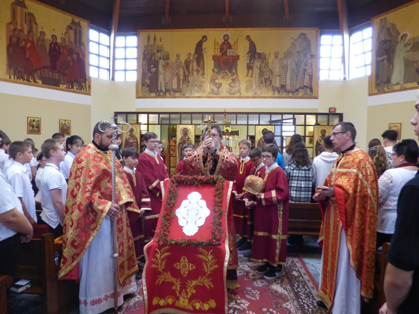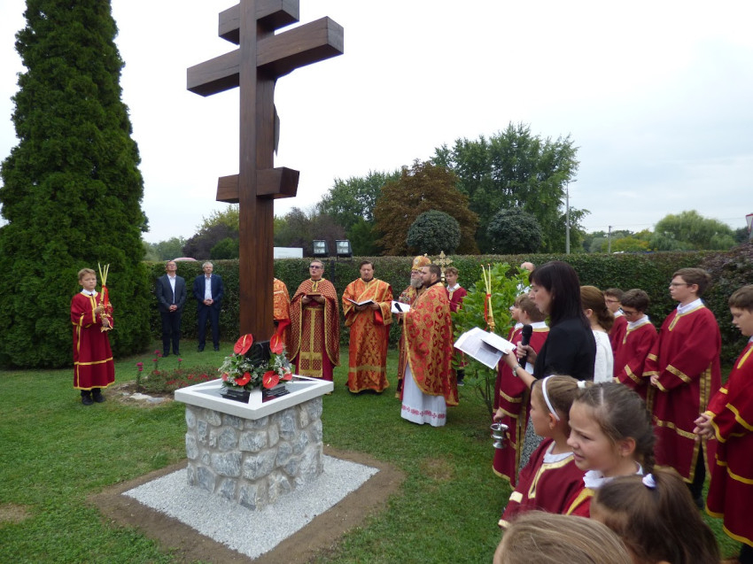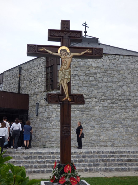 A templom felszentelésének kerek évfordulóján tartott ünnepi Szent Liturgiát Orosz Atanáz püspök vezette. Ennek kezdetén áldotta meg az új keresztet. A liturgián mondott homíliában a főpásztor a művészetben János-passióként is ismert evangéliumi szakasz (Jn 19) egy mondatát kiemelve arra hívta föl a figyelmet, hogy Jézus szenvedése és kereszthalála Isten végtelen szeretetének tanúsága. „Íme, a ti királyotok” – hangzik Pilátus mondata.