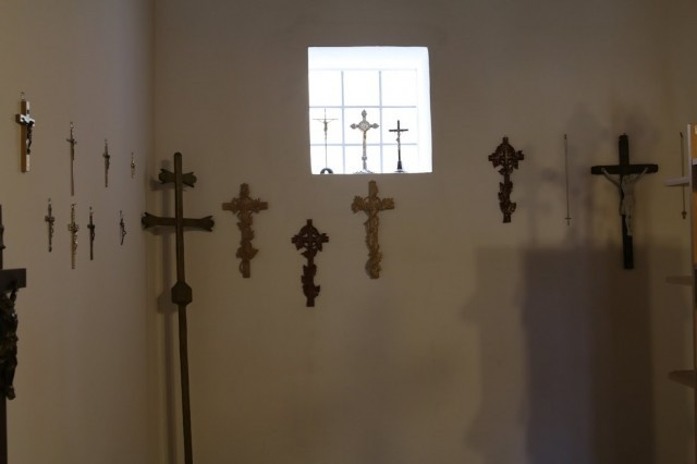 A kiállításon közel száz, anyagában, megmunkálásában, díszítettségében különböző kereszt látható, amelyeket a falu lakói hoztak el otthonaikból. Érezhető, hogy mennyire fontos szerepe van a keresztnek a családban. Anyagukat tekintve fa-, fém-, szalma-, kukoricacsuhé, bambusz-, kerámia-, vert csipke, horgolt és még mézeskalácstésztából készült kereszt is került a tárlatra. A Krisztus testét ábrázoló szobrok vagy korpuszok is többféle anyagból készültek: öntvényből, szalmából, lemezből, porcelánból. Krisztust minden esetben hajjal, szakállal és töviskoronával ábrázolták a készítők.