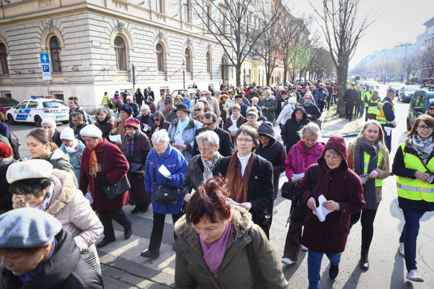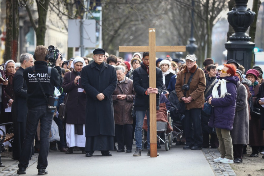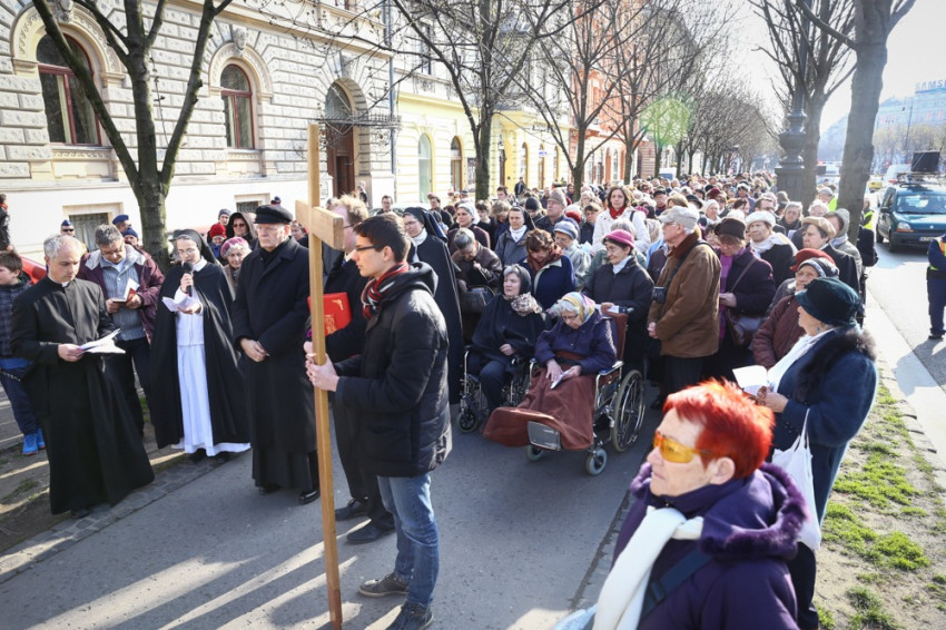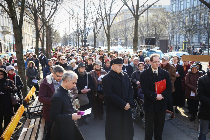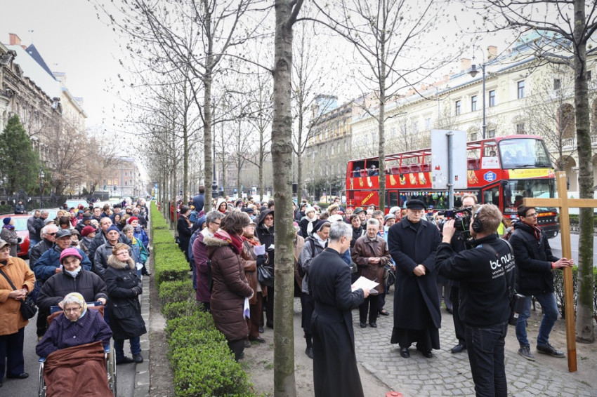 Krisztus szenvedések közepette, értünk és miattunk járta végig a Golgota útját. Keresztútja tanúságtétel az emberért vállalt áldozatról, a szeretetről, a reményről; áldozata értelmet ad a szenvedésnek. Induljunk, és tegyünk tanúságot kereszthordozásunkról – imádkozott Erdő Péter bíboros a menet indulásakor.