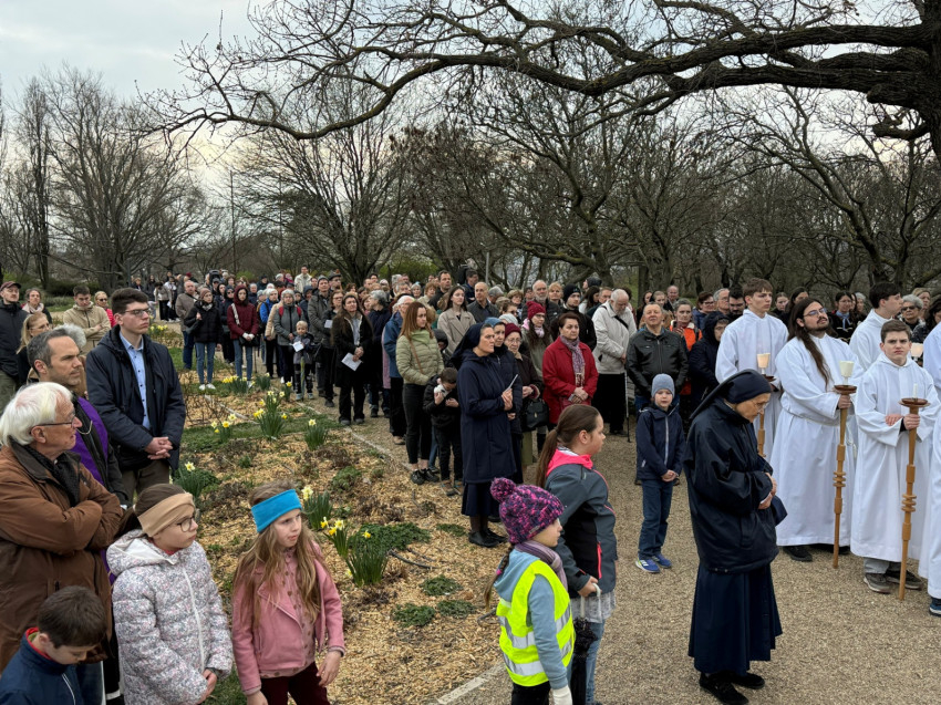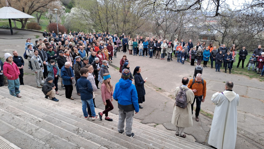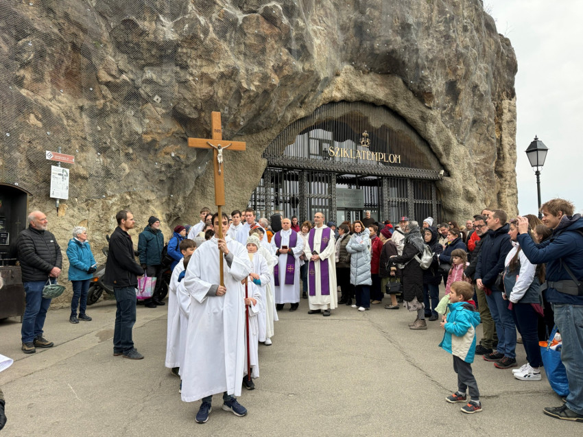 A mostani szombaton is a Sziklatemplom előtti téren gyülekeztek a hívek, hogy Szkaliczki Örs ciszterci szerzetes, szentimrevárosi plébános vezetésével imádkozva és énekelve elinduljanak a hegy tetejére. Mellette lazarista és pálos testvérek, valamint egy Dallasból érkezett ciszterci szerzetes, John atya segédkeztek az elmélkedések felolvasásánál.