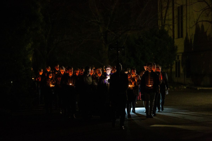 A keresztutat a park érintetlen csöndjében, gyertyafénnyel járták, melyek segítették az elmélyülést az egyes állomások mondanivalójában.