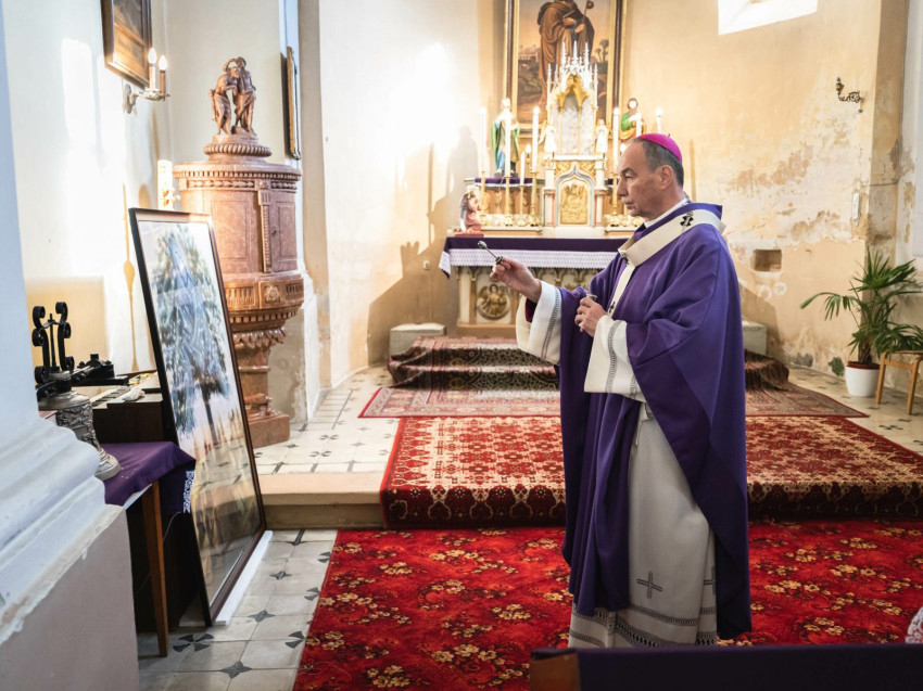 Udvardy György érsek a szentmise elején úgy fogalmazott: „Összejövünk, hogy ünnepeljük az Eucharisztiát, Krisztus áldozatát, és mi magunk is részesedjünk a nagyböjt szent idejében. Sor kerül egy kép megáldására, amelyet a településhez tartozó kápolnában helyeznek majd el, és a felújított temetői harang megáldására is. A harang mindig Isten szavát, Isten jelenlétét hozza közel hozzánk. Nagy öröm, és a nagyböjt kezdetéhez illeszkedik, hogy lehetőség van megáldani az elkészült stációkat, keresztutat is.”