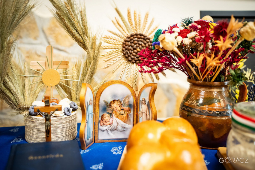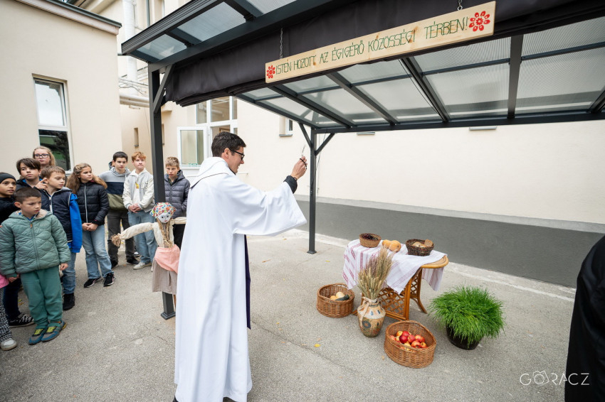 Az átadó ünnepségen Faragó András káplán terményáldással egybekötött szentmisét mutatott be, majd megszentelte az új közösségi teret.