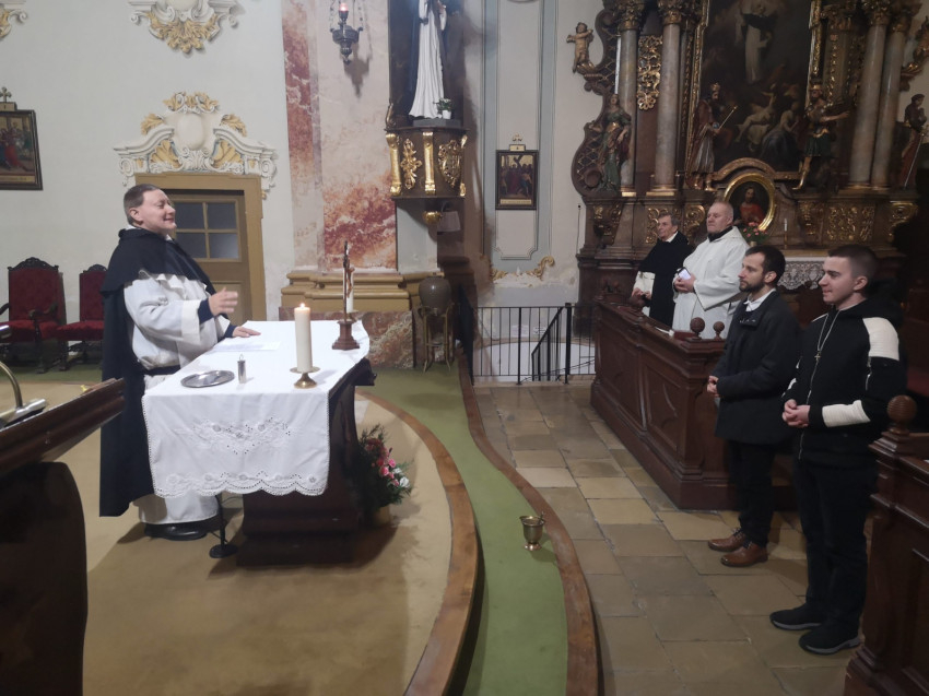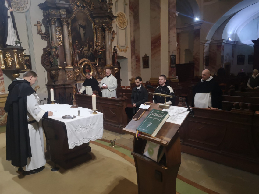A soproni domonkos templomban tartott rövid jelöltbevezetési szertartás keretében Szabó Sándor Bertalan OP, a soproni rendház priorja imádkozott a két jelöltért, és megáldotta jelöltkeresztjeiket.