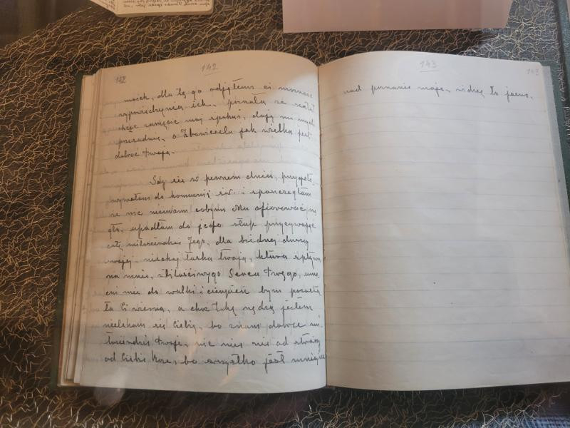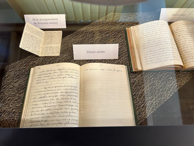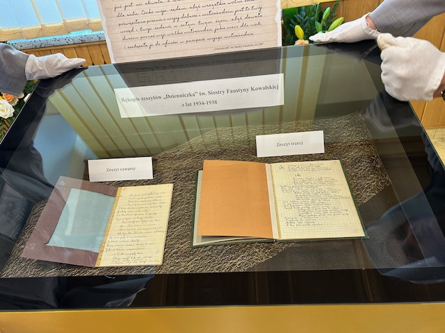Fausztina nővér naplójának eredeti kézirata mellett a kiállításon látható volt az az ezüst jegygyűrű, amit Jézus jegyeseként, az örökfogadalomkor kapott és a rózsafüzére is.
