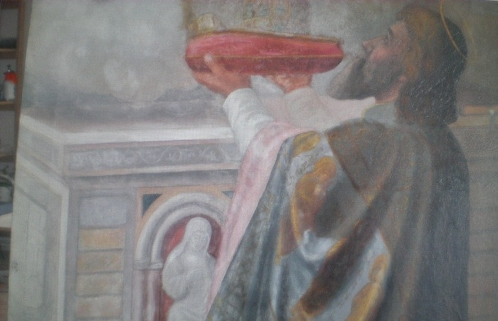 Szent István felajánlja a koronát a Szűzanyának – restaurálás előtt