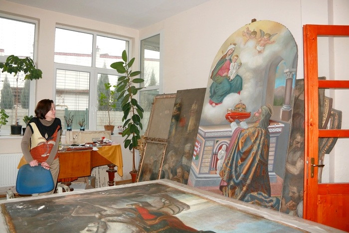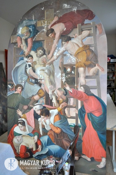 Puskás Éva és Sulyok László restaurátorok befejezték a szatmárnémeti székesegyház Szent István felajánlja a koronát a Szűzanyának című, illetve a máramarosszigeti Borromeo Szent Károly-templom Jézus levétele a keresztről című festményének felújítását. A munkálatok során ezúttal is több érdekességre derült fény. Bebizonyosodott, hogy a székesegyház mellékoltárképéről – valószínűleg a kommunista idők alatt – eltávolították a magyar nemzeti címer színeit, a Szent Koronát és a jogart pedig szinte áttetszővé tették: megpróbálták eltüntetni. Csak színes pontok utaltak rá, hogy a magyar nemzeti címer valaha színezett volt a festményen. A szakemberek elmondták, utána kellett olvasni, dokumentációra volt szükség ahhoz, hogy vissza tudják állítani az említett elemeket eredeti állapotukban. Most ez megtörtént: a címer, a korona és a jogar eredeti színeiben pompázik.