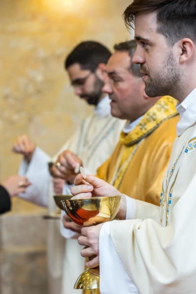 Felföldi László püspök a szentelendőkhöz intézett szentbeszédében a test, a lélek és a szellem egységét helyezte a középpontba, amely minden ember életének az alapja. E hármas egységet egy háromlábú székkel szemléltette, amely a föld legstabilabb ülőeszköze.