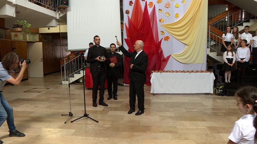 Ezt követően Ternyák Csaba érsek megáldotta az iskolaépületet és a termekbe kihelyezendő feszületeket.