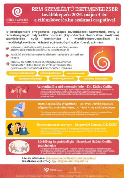 A Katolikus Szeretetszolgálat az egészségügyi dolgozók körében is igyekszik népszerűsíteni a termékenységet helyreállító orvoslás modern, erkölcsileg is elfogadható, rendkívül hatékony lehetőségét. Ennek érdekében RRM-szemléletű esetmenedzser-képzés címmel május 4-én ingyenes, egynapos akkreditált továbbképzést szerveznek, mely számos egészségügyi szakmacsoport – szülésznők, védőnők, nőgyógyászati dolgozók stb. – számára pontszerző továbbképzés. Az egynapos program keretében a meddőség orvosi és pszichológiai vetülete kerül fókuszba, a spontán fogamzás elősegítésének modern lehetőségeit bemutatva. A szakmai tartalmát a Természetes gyermekáldás projekt szakmai csapata és a Keresztény Családi Centrum munkatársai adják.