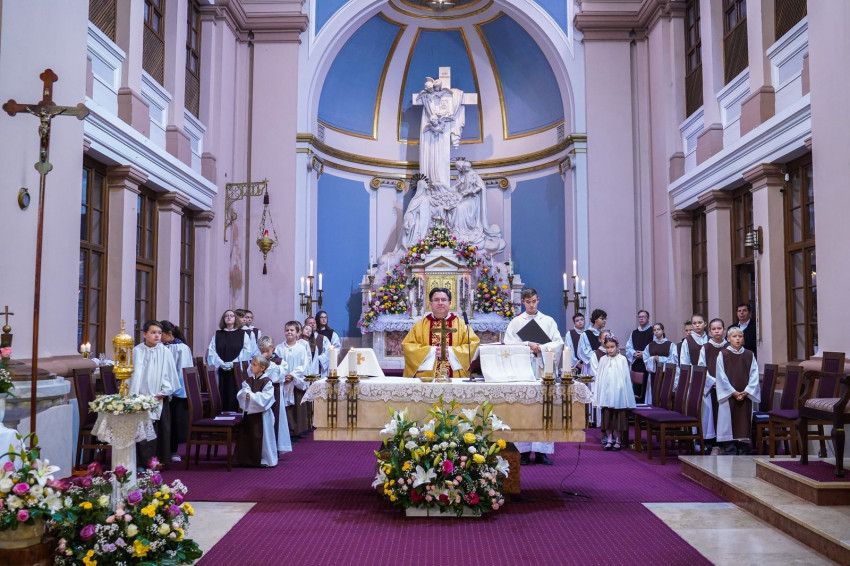 A Kis Szent Teréz-bazilika búcsúünnepén, vasárnap Takáts István érseki általános helynök mutatott be szentmisét, melyen koncelebrált a Kis Szent Teréz-bazilika plébánosa, Mezei András atya, valamint Bacsa Dávid káplán.