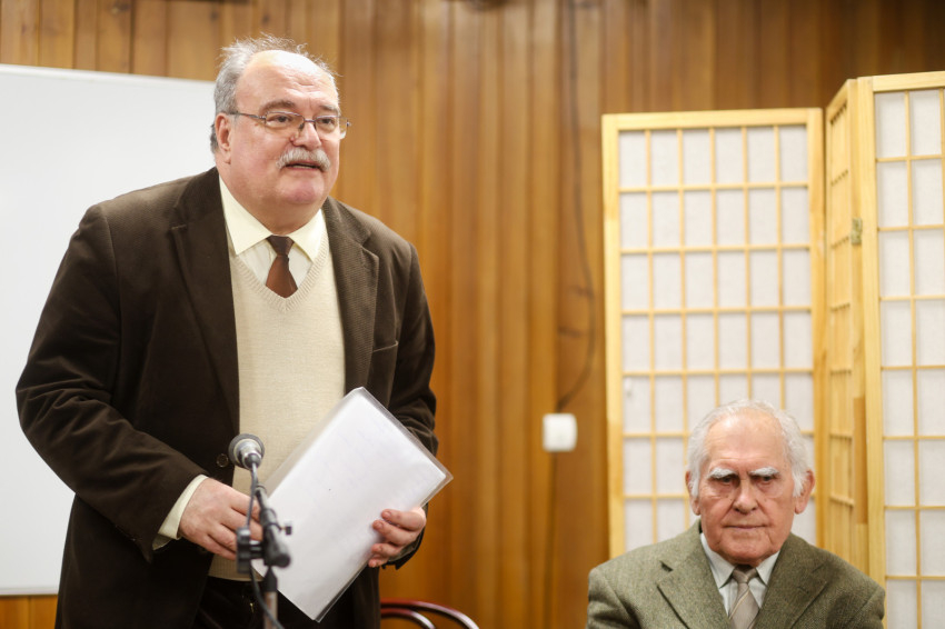 Személyes hangvételű ismertetésében elmondta, hogy Kaposi Márton professzorral több évtizedes baráti, munkatársi, tudományos kapcsolatban áll. Leszögezte: a most megjelent kötet filozófus, esztéta szerzőjének írói, tudományos életműve kimagasló; Horatiust idézve: „ércnél maradóbb” műveket hozott létre. A 87 éves, de változatlanul hatalmas munkabírású és kreatív Kaposi Márton megtestesíti mindazokat az értékeket, amelyekre ma Magyarországon különösen nagy szükség van. A professzor utalt Kaposi Filozófusok és filológusok című könyvére. Megjegyezte: ez a két dolog találkozik az ő életművében, filozófia és irodalom, költészet kapcsolatai.