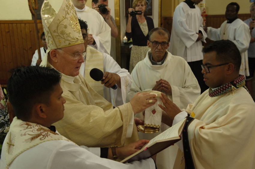 Az 1993-ban Flores szigetén született Aloysius Gonzagának és az 1991-ben Timor szigetén világra jött Yuliusnak nagyon hasonlóan alakult a papi hivatása: mindketten egyházi középiskolába jártak, ki-ki a saját szigetén lévő kisszemináriumban – derült ki a szentmise előtti ismertetésből, amelyet P. Madassery Benvin Sebastian SVD, a Pápai Missziós Művek magyarországi igazgatója tartott. – 2011-ben léptek be az Isteni Ige Társaságába (ez a verbita rend hivatalos neve); első fogadalmukat követően, 2013 és 2015 között Flores szigetén kezdték meg filozófiai és teológiai tanulmányaikat.