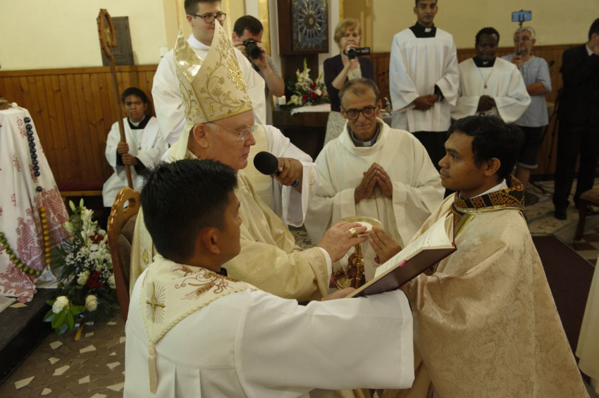 Az evangélium után a Názáret Missziósház vezetője, Ghie Marcell atya kérte a két diakónus pappá szentelését Cserháti Ferenctől.
