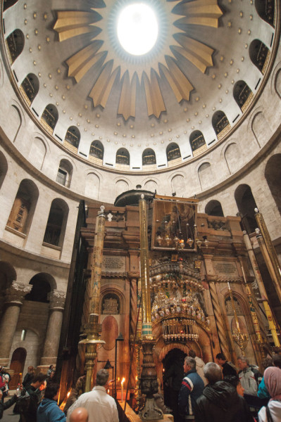 – Jelenleg is folyik még a Szent Sír körüli kövezet felújítása. Még sehol nincs lerakva új kövezet, a régészeti kutatás szakaszában vagyunk. A Szent Sír körül megtalálták a régi kőfejtő nyomait, valamint a Hadrianus korabeli szentély csonkjait. Ez csak részben újdonság, mert az 1974-es feltárásnál ezek egy része már előkerült. A tervek szerint az eddigi burkolatból újra lerakják majd a használható köveket, és a Szent Sír körül vörös tónusú kövekkel, a többi részen pedig fehér tónusúval pótolják ki azokat.