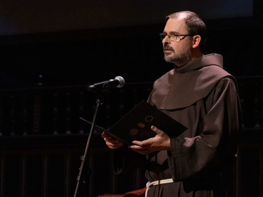 A ferences elöljáró elmondta, előző reggel érkezett haza Kárpátaljáról, miután a nagyszőlősi rendtársakat meglátogatta. Gyalog jött át a határon. Nem volt fennakadás, de előtte egy kicsit izgult, vajon nyitva lesz-e a határ, hiszen kora reggel megszólaltak a légvédelmi szirénák, és még nem fújták le a légiriadót. „Átjöhettem gond nélkül, s ahonnét átjöttem, a kárpátaljai országrészen nincsenek hadi cselekmények, így az ország többi részéhez képest béke van. Miért említem ezt most? Talán illendőbb lenne kihagyni egy ilyen ünnepi, vidám estén. Hadd hárítsam a felelősséget Assisi Szent Ferencre” – fogalmazott.