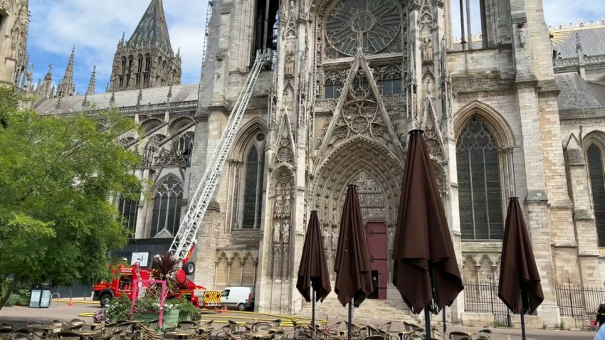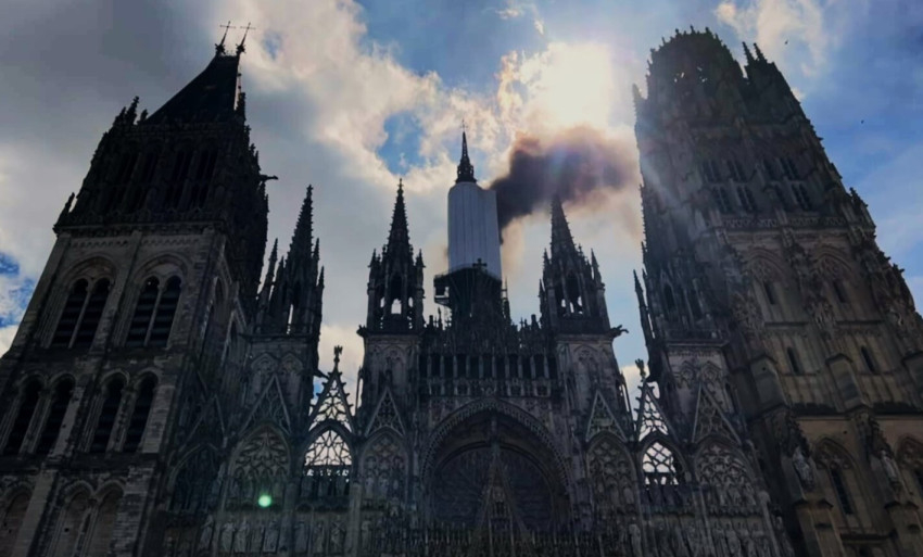 Az AFP hírügynökség úgy értesült Seine-Maritime megye prefektúrájától, hogy „a tűz az épület tetején tört ki, a huszártoronyban, amely nem fából, hanem fémből készült, és amely jelenleg helyreállítás alatt áll” – adta hírül az Infostart. A hatóságok egyelőre nem tudják, hogy a fából készült vázszerkezetet is érintett-e a tűz.
