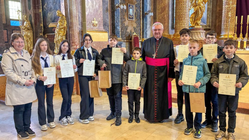 Az elismerő okleveleket, illetve az első három helyen végzettek a tárgyjutalmukat Veres András győri megyéspüspöktől és Balázs Tamás plébánostól vehették át.