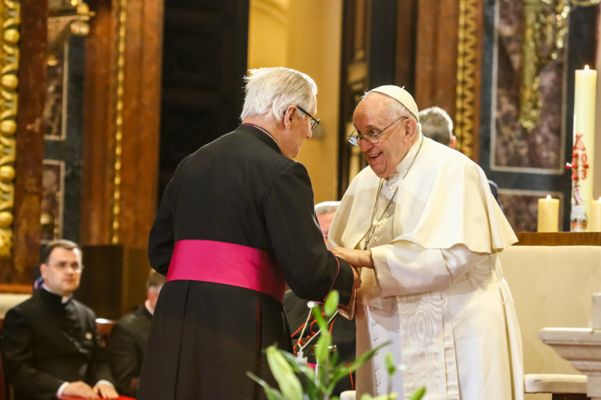 Találkozás Ferenc pápával a Szent István-bazilikában (2023. április 28.)