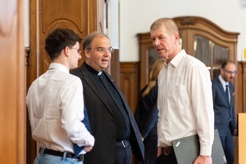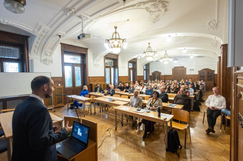Bagyinszki Péter Ágoston OFM, a Sapientia Szerzetesi Hittudományi Főiskola rektora köszöntőjében megemlítette, mekkora kihívás, hogy a diákok a mesterséges intelligencia használata terén ügyesebbek, tájékozottabbak, mint a pedagógusok. A jelenlévőknek éppen ezért ajánlotta a Jáki Szaniszló Társaság munkacsoportja által készített útmutatót, mely gyakorlati segítséget nyújt osztálytermi helyzetekre.