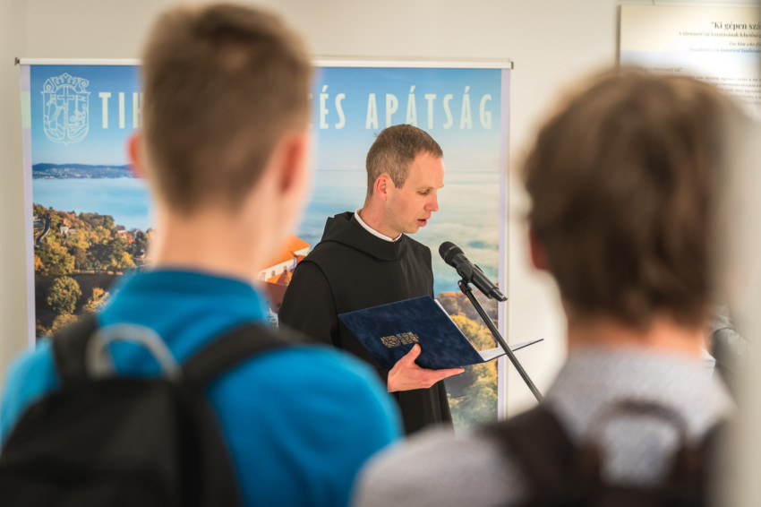 Pár héttel a munkálatok kezdete után megrendítő látványt nyújtott a szikláig kiásott kripta. A 18. század elején, a török kor elmúltával, a barokk újjáépítés kezdetekor azt írta Lécs Ágoston apát, hogy a Tihanyi Apátságot »supra firmam petram«, szilárd kősziklára építették. Mindezt még most is láthatjuk, a saját szemünkkel. Különösen napfelkeltekor szép ez a román kori tér. És még szebb akkor, amikor hiteles, 11. századi latin gregorián ének és a szerzetesek imádsága tölti be, közel ezer esztendővel az alapítás után is” – mondta köszöntőjében Mihályi Jeromos perjel.