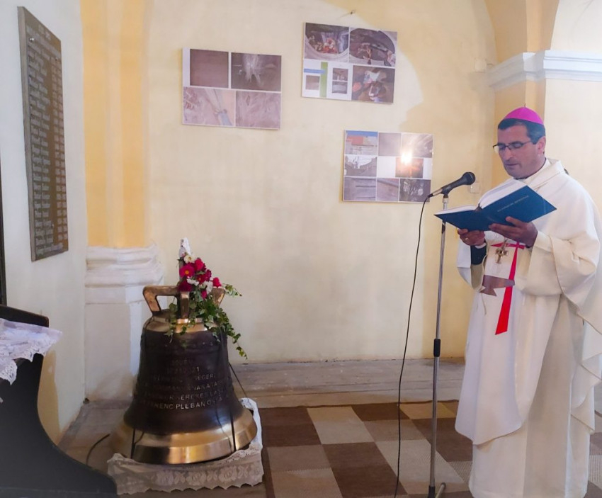 A szentmise végén a templom bejáratánál Kerekes László segédpüspök megáldotta a jubileumra készült emléktáblát és harangot, majd az oltárhoz visszatérve a záró köszöntések és köszönetek hangzottak el.