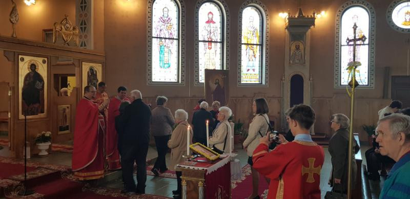 A Szent Liturgia végén miroválás és ereklyecsókolás volt, majd az Árpád-házi Szent Piroska Nőszövetség tagjai Szent Miklós-kenyeret osztottak a híveknek. Az idei, Szent Miklós ikonját ábrázoló mézeskalácsot, Durkovics Erika, egy féltve őrzött családi recept alapján különleges, fahéjas változatban készítette az ünneplő híveknek.
