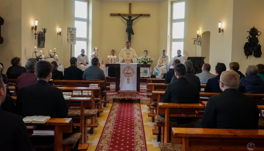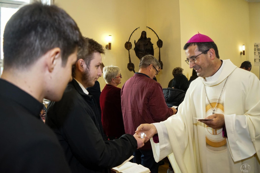 A közös együttlét csúcspontja a délben bemutatott szentmise volt, amelyet Kerekes László segédpüspök celebrált. Homíliájában kiemelte, hogy a szülők, akik gyerekük hivatásának közvetlen kísérői, a Szűzanyához hasonlóan meg kell hogy tanulják az elengedés és az úton való folytonos kísérés művészetét, amely nem elszakítottságot, hanem a szeretet igaz megélését jeleníti meg: eszköz lenni Isten szemében, felismerve az isteni akaratot a hivatás kibontakozó kis csíráiban is. A szentmise végén a segédpüspök minden jelenlévő szülőt, testvért megajándékozott egy rózsafüzérrel és egy szentképpel.