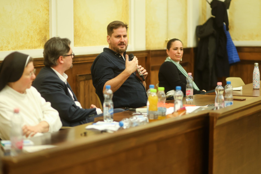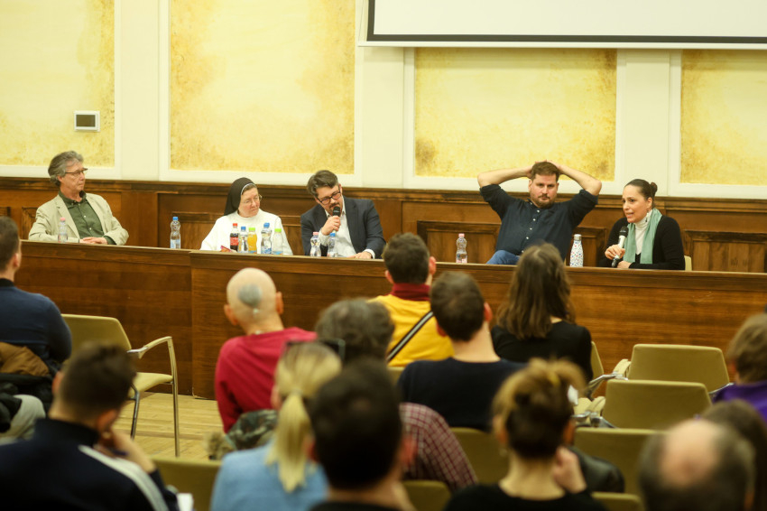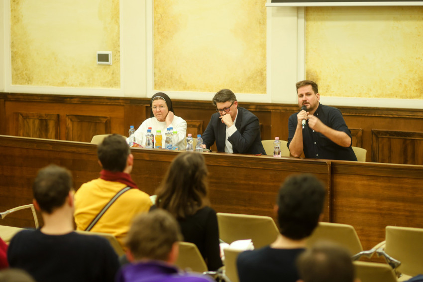 Baritz Sarolta Laura OP a beszélgetés során azt hangsúlyozta, hogy a közjó modellben az ember és annak szabadsága, felelőssége áll a középpontban. Az ember belső motivációja által képes legyőzni a struktúrát.
