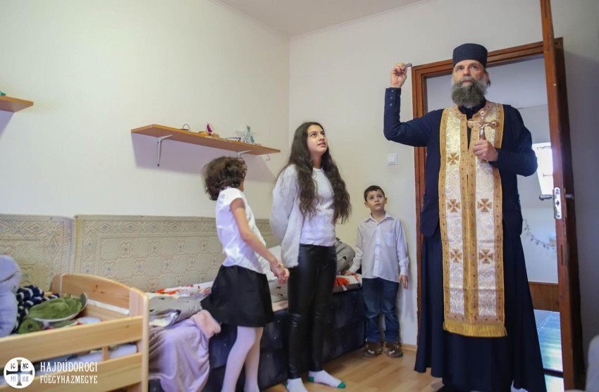 A legkisebb lakó, aki még csak hároméves, lelkesen kalauzolta Kocsis Fülöp atyát szobáról szobára, hogy minden helyiséget megszenteljen az érsek-metropolita.