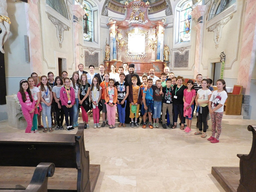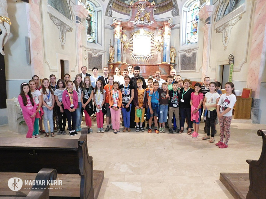A mátraverebélyi tábor első napján a görögkatolikus Szent Liturgiát Bodnár Attila iskolalelkész celebrálta a kis misszionáriusokkal teli kegytemplomban.