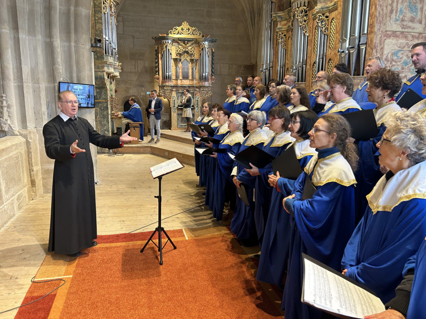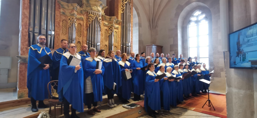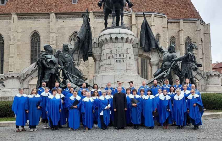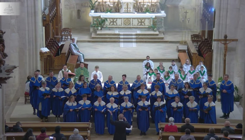 A váci énekeseket és karnagyukat az impozáns gótikus Szent Mihály-templomban László Attila főesperes köszöntötte. A szentmisén végzett zenei szolgálat keretében gregorián és polifónikus tételek szólaltak meg. A szertartást rövid hangverseny, egyházzenei áhítat követte a Váci Székesegyházi Kórusiskola tanárai, illetve Fitos Mónika és Reményi Anna énekművészek közreműködésével. A váci énekkar tagjait Potyó István kolozsvári karnagy nagy vendégszeretettel fogadta.