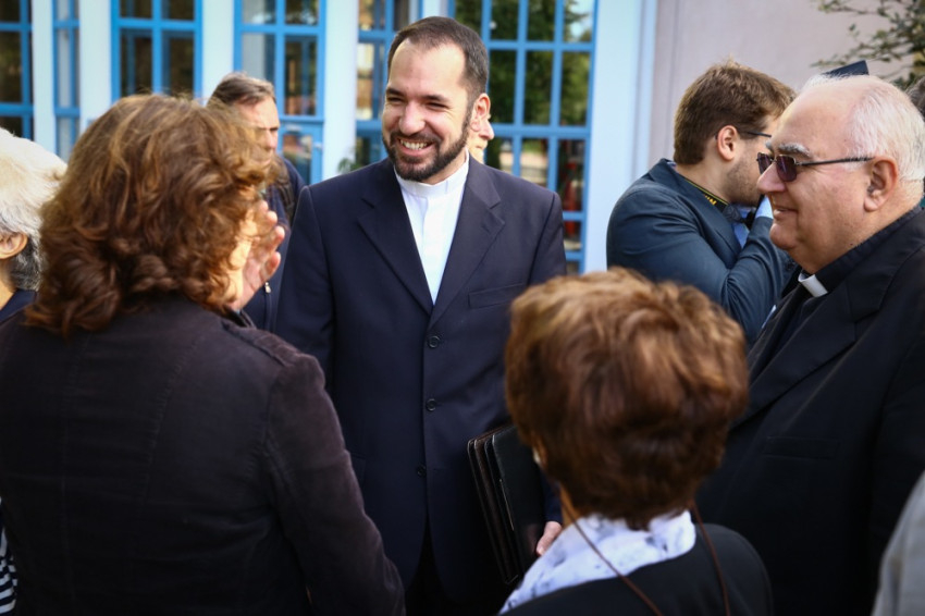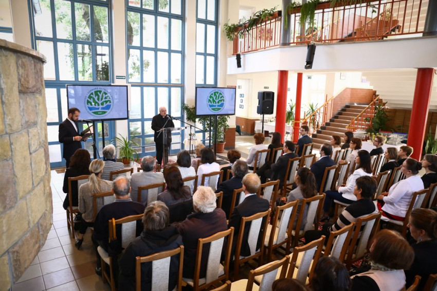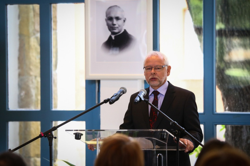 Bagdy Gábor főpolgármester-helyettes köszöntötte a konferencia résztvevőit. Megköszönte az iskolának, hogy őrzik a második világháború idején több ezer családot megmentő nunciusi titkár emlékét és továbbadják a diákoknak az általa képviselt keresztény értékeket, mások megsegítésének értékét.